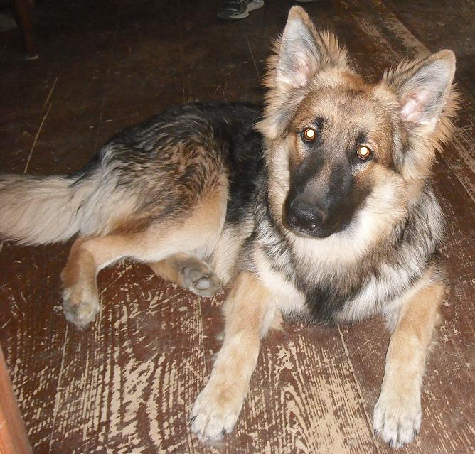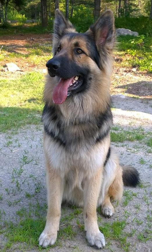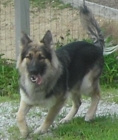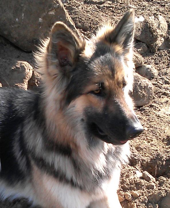 Chiron (pronouced Ky-Ron) is a large sable longcoat male. He is West German titled import lines x with Ch American show lines on his father's side and American and German on his mother's. He is a gorgeous boy and these pictures do not do him justice. He is a good natured big boy, very easy going. |