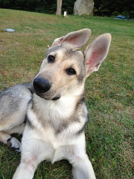 | Below is Belle, from Kyzer and Kendra. Her owner writes "Belle is a wonderful and playful puppy... She loves attention, actually has to be the center of attention all the time. She has a great temperament, my daughters (4 & 2) pull on her tail and she doesn't complain at all. The girls could do anything, we don't encourage it but she will not even growl or anything she just gives them kisses. I couldn't ask for a better dog. She is smart, playful, lovable and gorgeous. Everywhere we go people ask where we got her and say she is a beautiful and lovable dog. She gives kisses to everyone, even strangers. We love her." (6/08) | ||||||||||||||||||||||||||||||||||||||||||||||||