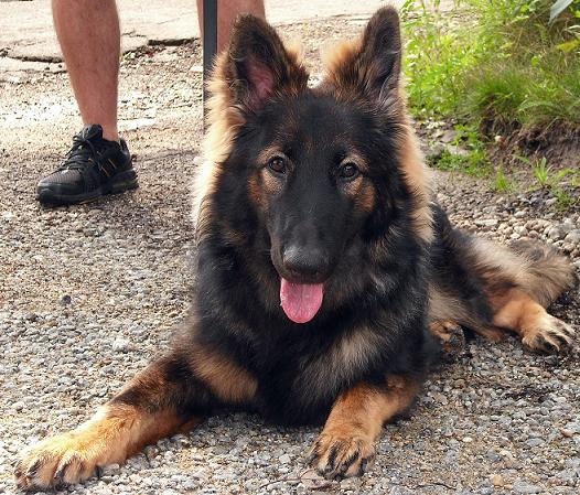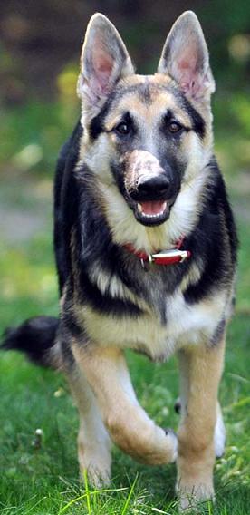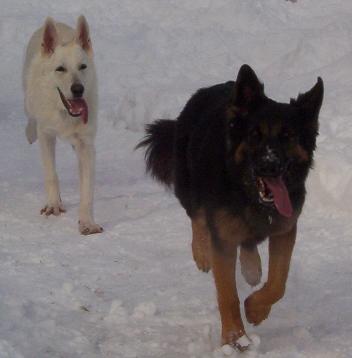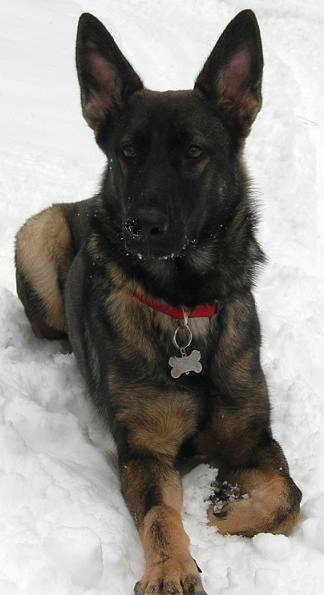 | Maisie from Tyr and T'kya, picture taken this past winter (08) her owner's write "She is a wonderful dog (though she doesn't have a clue she is a dog and not one of the kids)! She is an amazing athlete who loves running, jumping, catching and fetching. Our vet is continuously impressed by her physical build as well as her manners. Just as when she was a pup, we can't go anywhere with out people stopping to marvel at her looks. She is welcome everywhere as she has a reputation of being a very well behaved dog. She is very laid back and takes everything in stride. Thank you again for such a great dog! |