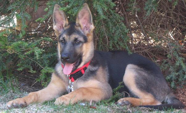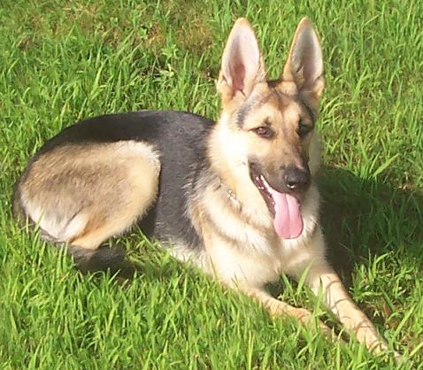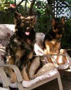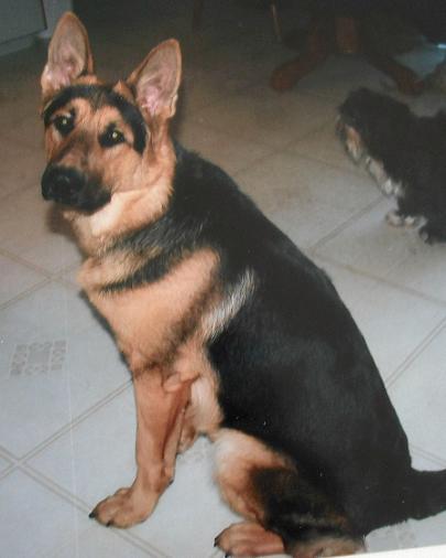 Left is Josey (Magus/Zaretta). Her owner's write" She is great! Josey is one of the smartest and fastest learning GS in the class. We are complimented by the trainer all the time. Basically our world revolves around her-she is wonderful and we love her sooo much. She is also magnificently beautiful" (6/10) | |||||||||||||||||||||||||||||||||