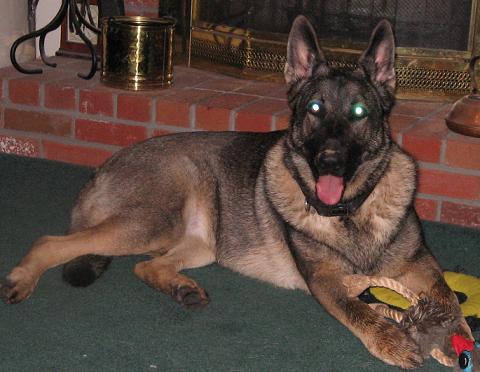 | Here is Ronan from Magus and T'Kya. His owner writes " My 2 1/2 yr old granddaughter just loves him and he loves her, she kisses and hugs him when she sees him. Great watch dog but still acts alike a baby. Very smart pup, this is what it's about." (8/10) | |||||||||||||||||||||||